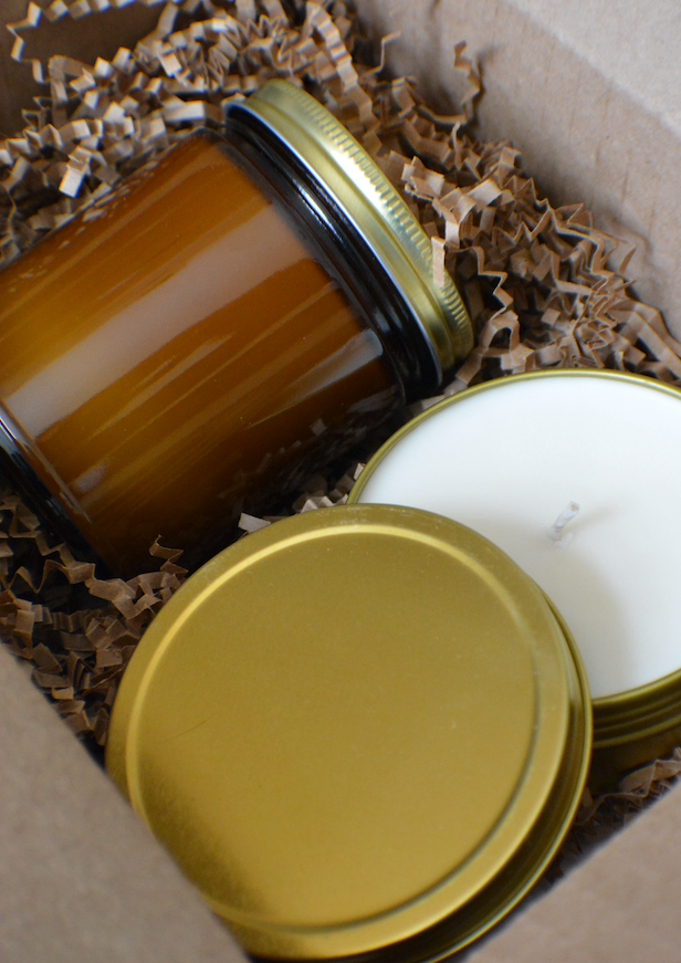 recyclable amber glass jar, soy wax, clean fragrances, cotton paper wick